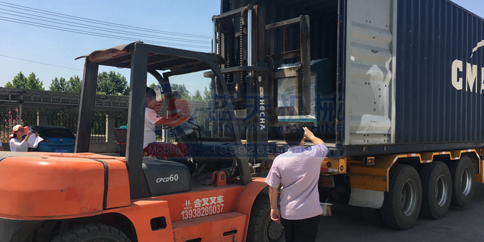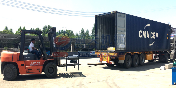 燒烤炭成型機(jī)發(fā)往印尼裝車現(xiàn)場