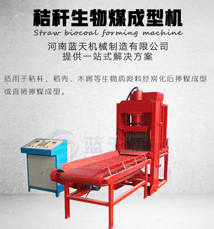 河南藍天機械制造有限公司生產(chǎn)的秸稈生物煤成型機主要用于把較松散的農(nóng)作物秸稈在壓力、溫度、粒度、含水率適宜的條件下成型為棒狀或塊狀,以提高燃料的燃燒性能。經(jīng)過秸稈生物煤成型機生產(chǎn)出來的生物質(zhì)燃料塊是一種新型的可回收利用環(huán)保型燃料,具有清潔、高熱值、高燃燒效率等特點,可做燃爐、鍋爐、發(fā)電爐的燃料,在部分領(lǐng)域完全可以做為煤的替代品,成型后的秸稈生物煤也可以經(jīng)炭化后制成生物質(zhì)炭,以滿足生產(chǎn)和生活對高品位能源的需求。