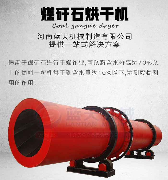 煤矸石是采煤過程和洗煤過程中排放的固體廢物,作為礦業(yè)固體廢物的一種,煤矸石棄置不用,占用大片土地,而煤矸石烘干機的出現(xiàn)可將其“變廢為寶”,使其產(chǎn)生巨大的利用價值。河南藍(lán)天機械制造有限公司生產(chǎn)的煤矸石烘干機對煤矸石烘干有很好的效果,以其熱效率高、生產(chǎn)能力大、使用壽命長等優(yōu)勢被國內(nèi)外用戶所喜愛。煤矸石是采煤過程和洗煤過程中排放的固體廢物,作為礦業(yè)固體廢物的一種,煤矸石棄置不用,占用大片土地,而煤矸石烘干機的出現(xiàn)可將其變廢為寶,使其產(chǎn)生巨大的利用價值。河南藍(lán)天機械制造有限公司生產(chǎn)的煤矸石烘干機對煤矸石烘干有很好的效果,以其熱效率高、生產(chǎn)能力大、使用壽命長等優(yōu)勢被廣大用戶所喜愛,是建材設(shè)備中收益回收快的設(shè)備,設(shè)備型號齊全、工作能力強,值得投資。