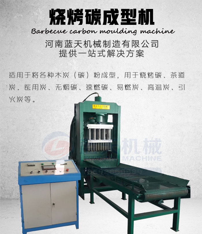 河南藍(lán)天機(jī)械制造有限公司設(shè)計(jì)的燒烤碳成型機(jī),采用上下液壓,上壓120T,下頂120T,因?yàn)閴毫Φ淖饔,做出來的燒烤碳密度大,無煙、易燃,所以也被稱為液壓燒烤碳成型機(jī),無煙燒烤碳成型機(jī),形狀外觀可以根據(jù)用戶的要求定做。藍(lán)天機(jī)械生產(chǎn)的燒烤碳成型機(jī)主要是針對(duì)碳的特性,將碳粉壓成型。目前新設(shè)計(jì)的液壓燒烤碳成型機(jī),采用了上下同時(shí)施壓,上壓120T,下頂120T,做出來的燒烤碳密度非常大,滿足不少燒烤餐廳、烤肉店、與戶外燒烤愛好者的需求。