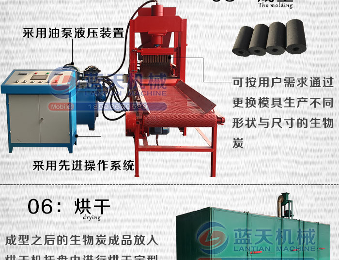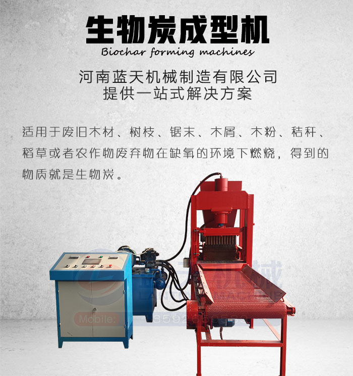 藍(lán)天機(jī)械生產(chǎn)的生物炭成型機(jī)主要用于成型生物質(zhì)廢料炭化之后的物料,通過(guò)更換模具可實(shí)現(xiàn)一機(jī)多用,滿足用戶的不同需求。液壓生物炭成型機(jī)采用PLC全程智能控制,并配備數(shù)據(jù)輸出裝置,實(shí)現(xiàn)智能無(wú)人操作。藍(lán)天機(jī)械是河南地區(qū)專業(yè)生物炭成型機(jī)廠家,咨詢更多相關(guān)可撥打官網(wǎng)熱線。