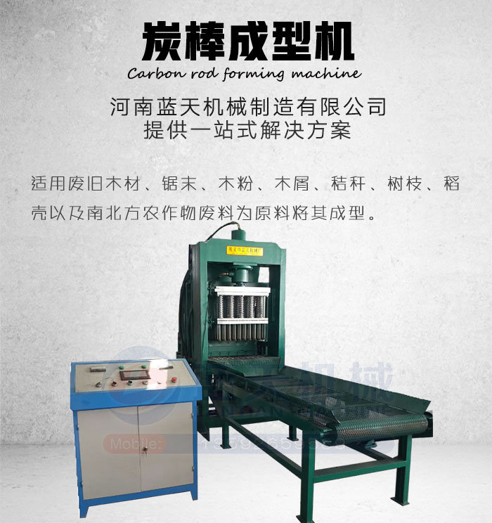 藍天機械生產(chǎn)的炭棒成型機采用液壓成型技術(shù),上下同時施壓,上壓120T,下頂120T,因液壓炭棒成型機做出來的成品密度非常大,廣泛受到餐廳、燒烤、取暖等行業(yè)的青睞,咨詢炭棒成型機廠家請認準“藍天”!
