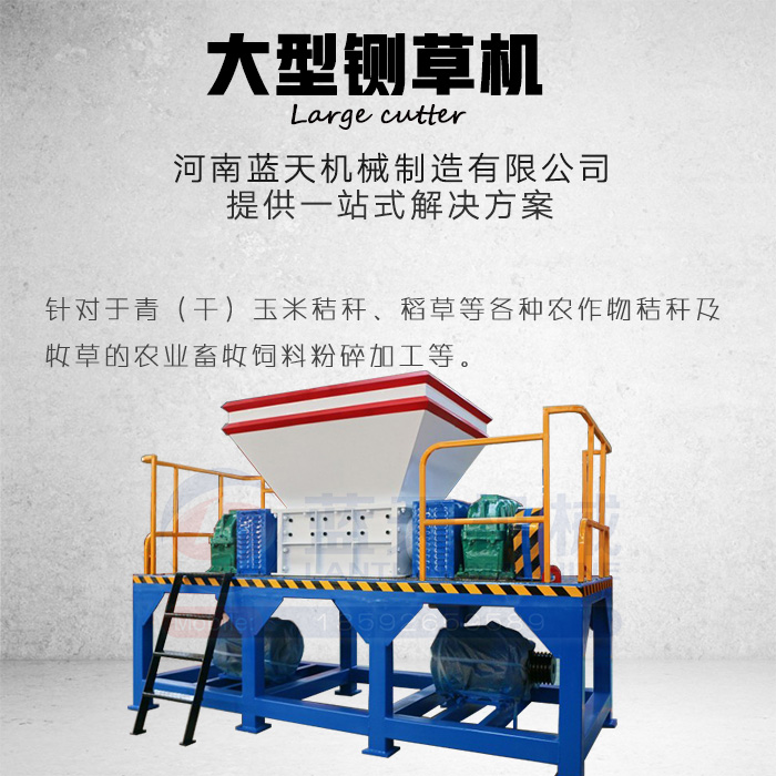 大型鍘草機河南藍天機械制造有限公司新型破碎產(chǎn)品全部采用微電腦(PC)自動控制系統(tǒng),設啟動、停止、反轉(zhuǎn)及超載自動反轉(zhuǎn)控制功能,具有低速、大轉(zhuǎn)矩、低噪音等特點。軸承座采用對開型式,拆裝換刀容易方便適合撕碎特大、特厚難碎物料。