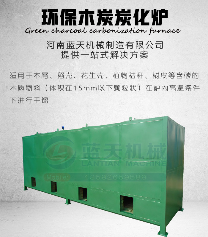 木炭是木材或木質(zhì)原料經(jīng)過不完全燃燒,或者在隔絕空氣的條件下熱解,所殘留的深褐色或黑色多孔固體燃料。木炭炭化爐是通過人工手段,將木材或者木質(zhì)原料在缺氧條件下將木材與木質(zhì)原料加工成木炭的生產(chǎn)工藝。河南藍(lán)天機(jī)械制造有限公司可根據(jù)用戶提供的規(guī)格大小、電器規(guī)范設(shè)計(jì)提供出一整套完整的椰殼炭化處理方案。